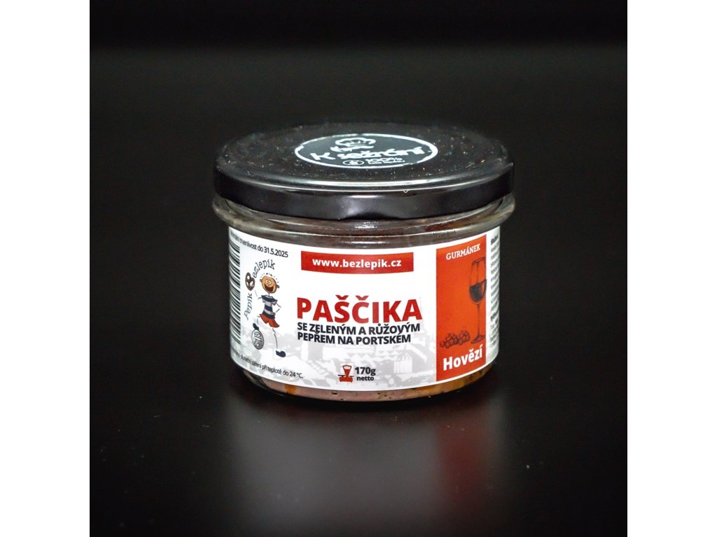 Bezlepík PAŠČIKA HOVĚZÍ se zeleným a růžovým pepřem na Rochesteru punch 170 g