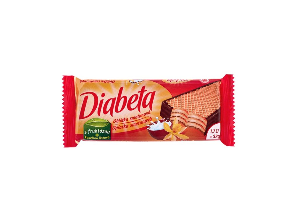 Smetanová oplatka Diabeta je oplatka se smetanovou krémovou náplní (63%), s fruktózou a vanilkovou příchutí obohacená o kyselinou listovou, po obvodě máčená kakaovou polevou s fruktózou. Je vhodná k rychlému doplnění energie pro sportovce, při fyzické nebo psychické zátěži. Oplatka je vhodná pro diabetiky.