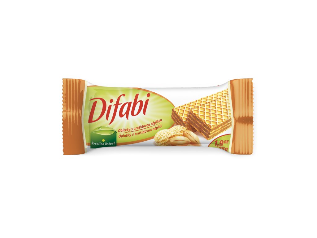 Difabi oplatky s arašídovou náplní jsou speciálně vyvinuty pro diabetiky a osoby sledující příjem cukru. Obsahují fruktózu místo klasického cukru a jsou obohaceny o kyselinu listovou, která podporuje normální funkci imunitního systému. Křupavé oplatky jsou plněné krémovou arašídovou náplní s obsahem 5% pražených arašídů, což zajišťuje autentickou chuť a příjemnou texturu.