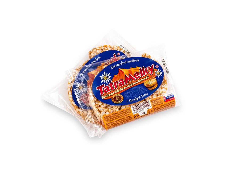 Název Tatramelky vznikl jako hravá kombinace Tater a karamelu – dvou věcí, které milujeme. Vyrábějí se ve Vysokých Tatrách pouze z prvotřídních surovin: pravého mléčného karamelu a rýžových burizonů. Bez lepku, bez umělých přísad, jen poctivá kvalita a jedinečná chuť.