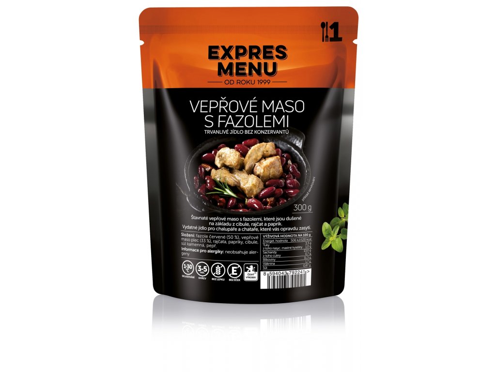 Složení: fazole černé (50 %), vepřové maso plec (25 %), lečo (rajčata, papriky, cibule) (23 %), sůl kamenná, pepř.