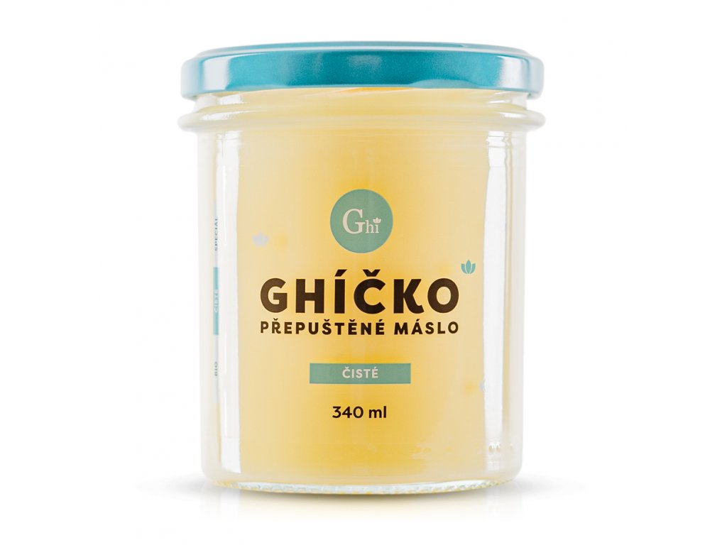 Ghí je čistý máselný tuk s chutí a vůní másla, ale s jinými vlastnostmi. Je ideální ke smažení, nepřepaluje se. Vydrží až rok, nemusí se chladit. Má blahodárné účinky na vaše zdraví. A v neposlední řadě krásně voní a dobře chutná.