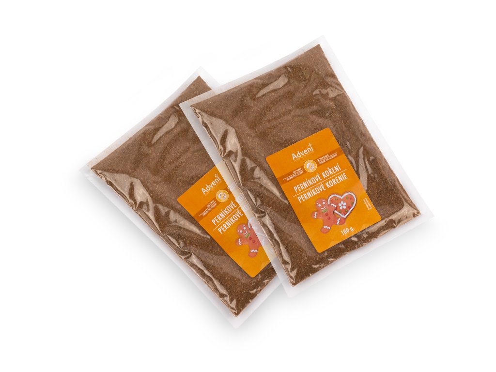 skořice mletá, koriandr mletý, fenykl mletý, anýz mletý, pomerančová kůra mletá, nové koření mleté, badyán mletý, hřebíček mletý, muškátový květ mletý, muškátový ořech mletý, zázvor mletý.